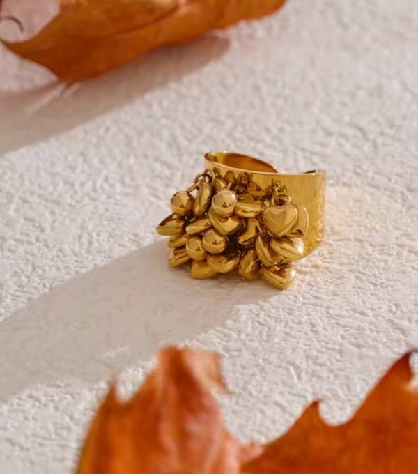 Anello a fascia tempestato da tantissimi mini charms a forma di cuore.