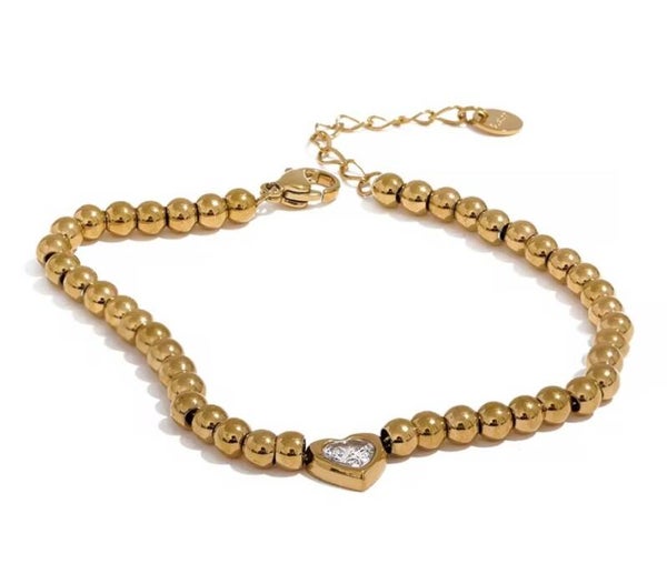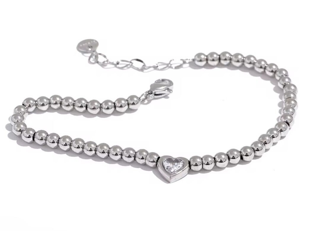 Bracciale in acciaio inossidabile con perline e cuore centrale.