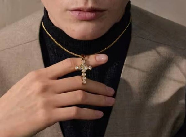 Ciondolo a forma di croce in acciaio inossidabile Gold con zirconi